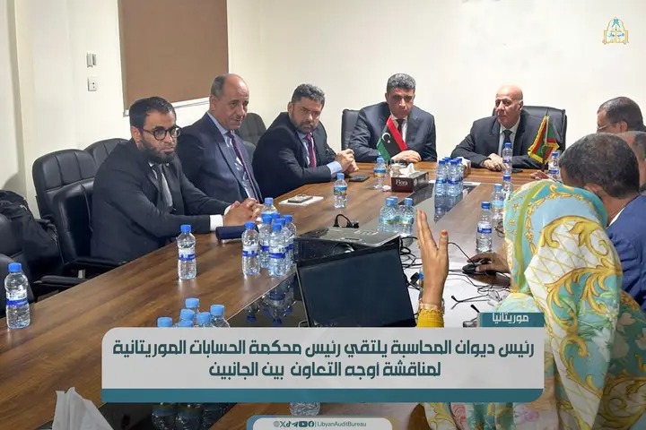 وتطرق الجانبان أيضًا إلى متابعة نشاط بعض الاستثمارات الليبية بالجمهورية الإسلامية الموريتانية ومناقشة آليات متابعتها وتقييم أدائها من منظور رقابي مهني، بما يضمن سلامة الإجراءات المالية وحماية الأصول الاستثمارية وتحقيق أعلى مستويات الحوكمة.
